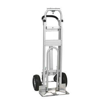 Specifications Value priced truckAluminum construction3 Positions: Vertical - 2 wheel45° - 4 wheelPlatform - 4 wheel18 " x 7.5 " cast aluminum noseplate7.5 " W x 27 " L recessed folding nose extensionHandle height 48 "10 " full pneumatic wheel5 " x 1.25 swivel castersShips KD/boxedDimensions (WxHxD):21.5 " x 52 " x 19 "Capacity, 45° / 4 Wheel:500 lb.Capacity, 2 Wheel:500 lb.Capacity, 4 Wheel:750 lb.Frame Bed:12 " x 51 "Wheel:Steel Offset 10 " x 3.5 " PneumaticCaster:7 "Weight:46 lb.