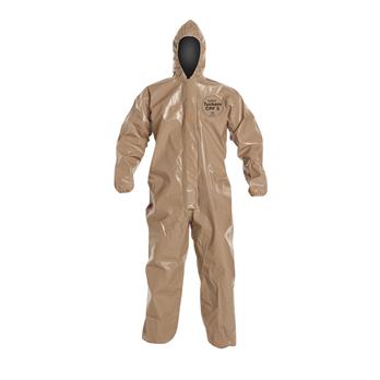Tychem® 5000 fabric is composed of a multi-layer film barrier laminated to a durable 2.0 oz/yd2 polypropylene substrate. Tychem® 5000 fabric is strong and durable for rigorous activities and rugged situations involving liquid splash and provides barrier to a broad range of chemicals. Typical Applications: chemical handling, petro-chemical, hazardous materials/waste clean-up, fire departments, industrial hazmat teams, utilities, and domestic preparedness. Commonly used in domestic preparedness for situations where the potential to exposure to chemicals exist.Taped seams provide strong chemical resistance against heavy liquid splashes. A sewn seam is covered with a strip of compatible chemical-resistant material through heat sealing.Attached hood with elastic around face openingStrong zipper for tough, flexible closureStorm flap covers zipper which can be sealed by the wearer with adhesive strip to prevent intrusion at zipperElastic opening for tighter fit at wristElastic opening for tighter fit at ankle