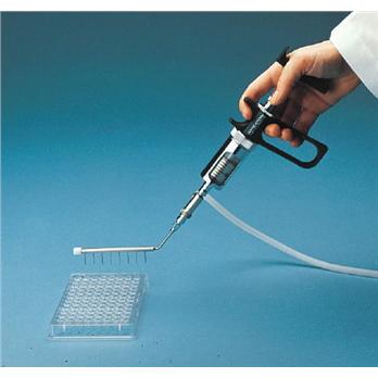 Specifications Automatic, self-refilling syringe with spring loaded plunger allows repetitive delivery of preset aliquots from a single reservoirRugged construction for long lifeDetachable three-way valve ensures repetitive accuracy of ±1%Interchangeable ground glass barrel with Viton ®®washers for corrosion resistanceSupplied with blunt end cannula with Luer lock, long and short chrome-plated intake/air vent cannula, sinker and silicone tubing. Autoclaveable.Thomas No.Capacity (mL )Graduation Markings7726Q500-1graduated every 0.05 mL numbered every 0.5 mL7726Q550-2graduated every 0.1 mL numbered every 1.0 mL7726Q600-5graduated every 0.5 mL numbered every 1.0 mL7726Q650-10graduated every 1.0 mL numbered every 5.0 mL7726Q704-20graduated every 1.0 mL numbered every 5.0 mL