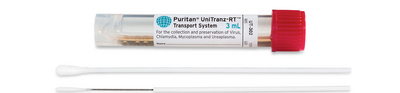Universal Transport System^ 16 x 100mm vial has 3ML of Universal Transport Medium with one regular polyester swab and one mini-tip swab (plastic/wire handle) wrapped in paper/poly, polystyrene handle scored at 100mm.