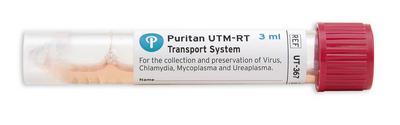 Universal Transport System^ 16 x 100mm vial has 3ML of Universal Transport Medium with one elongated PurFlock Ultra swab and one ultrafine PurFlock Ultra swab wrapped in paper/poly, both polystyrene handles have a 100mm breakpoint.