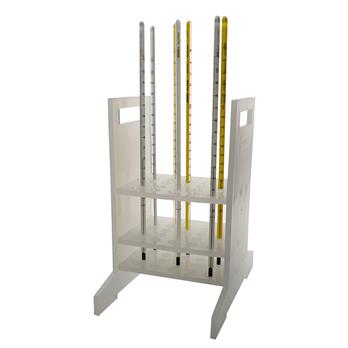 Safely Holds Up to 25 ThermometersThis polypropylene rack holds up to 25 thermometers in a safe vertical position to avoid damage while drying. Hole diameters in the top and middle plates are 7.9mm (5/16”) while the bottom plate has only. 3.2mm (1/8”) diameter drain holes.The distance between top and bottom plates is 105mm (4 1/8”). Overall dimensions are: 149 x 213 x 251 mm (5 7/8” x 8 3/8” x 9 7/8”) Steam autoclavable at 121°C (250°F).