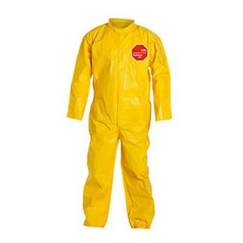 A lightweight, and durable fabric, DuPont™ Tychem® 2000 utilizes the strength of DuPont™ Tyvek® fabric and a polyethylene coating. Tychem® 2000 fabric provides at least 30 minutes of protection against 42 chemical challenges. Tychem® 2000 is used for light splash protection in a variety of industrial environments, including petroleum refining, pulp and paper manufacturing, food processing, chemical processing, and pharmaceutical manufacturing.Tightly sewn seam is covered with garment fabric to reinforce seam and reduce potential for particle penetrationLaydown collarStorm flap covers zipper which can be sealed by the wearer with adhesive strip to prevent intrusion at zipperOpen wristsOpen ankle