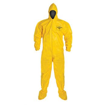 Tychem® 2000 Coverall, Standard Fit Hood, Elastic Wrists, Attached Socks, Storm Flap with Adhesive Closure, Bound Seams, Yellow, 5XL, Case of 12