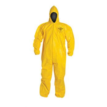Tychem® 2000 Coverall, Standard Fit Hood, Elastic Wrists & Ankles, Storm Flap with Adhesive Closure, Bound Seams, Yellow, 6XL, Case of 12