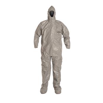 Tychem® 6000 garments are made of a proprietary barrier film laminated to a Tyvek® substrate. The fabric provides at least 30 minutes of protection against over 181 challenge chemicals including chemical warfare agents and toxic industrial chemicals. Tychem® 6000 garments are strong, durable and lightweight, and they are available in both high-visibility orange and low-visibility gray fabrics, making them a preferred choice for law enforcement, emergency medical services (EMS) technicians and military personnel.Taped seams provide strong chemical resistance against heavy liquid splashes. A sewn seam is covered with a strip of compatible chemical-resistant material through heat sealing.Three-piece hood design with longer zipper that extends to chin for complete coverage of neck area and good fit around a respiratorStorm flap covers zipper which can be sealed by the wearer with adhesive strip to prevent intrusion at zipperElastic opening for tighter fit at wristIntegrated socks composed of garment materialTychem® 6000 Coverall. Respirator Fit Hood. Elastic Wrists. Attached Socks. Storm Flap. Taped Seams. Gray.