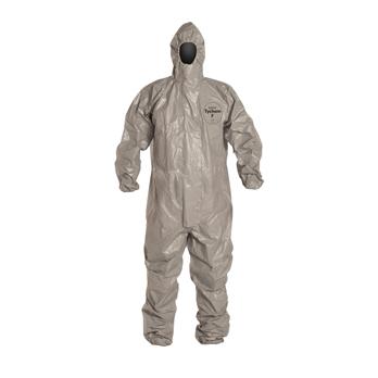 Tychem® 6000 garments are made of a proprietary barrier film laminated to a Tyvek® substrate. The fabric provides at least 30 minutes of protection against over 181 challenge chemicals including chemical warfare agents and toxic industrial chemicals. Tychem® 6000 garments are strong, durable and lightweight, and they are available in both high-visibility orange and low-visibility gray fabrics, making them a preferred choice for law enforcement, emergency medical services (EMS) technicians and military personnel.Taped seams provide strong chemical resistance against heavy liquid splashes. A sewn seam is covered with a strip of compatible chemical-resistant material through heat sealing.Three-piece hood design with longer zipper that extends to chin for complete coverage of neck area and good fit around a respiratorStorm flap covers zipper which can be sealed by the wearer with adhesive strip to prevent intrusion at zipperElastic opening for tighter fit at wristElastic opening for tighter fit at ankleTychem® 6000 Coverall. Respirator Fit Hood. Elastic Wrists and Ankles. Storm Flap. Taped Seams. Gray.
