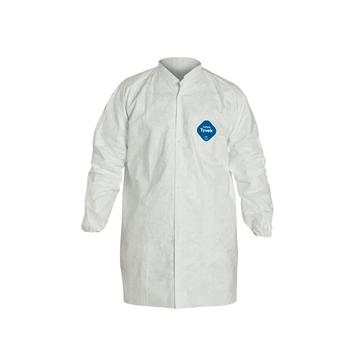 Tyvek® 400 Frock, Mandarin Collar, Elastic Wrists, Front Snap Closure, Serged Seams, White, 5XL, Case of 30