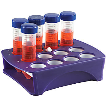 A rack for every applicationQuickly change tube sizes with this adaptable polypropylene rack. Open the iris with a turn of the knob or directly insert a tube into the opening. Holds up to 12 similar size tubes. Imprinted references for easy identification. Generously-sized handles for easy transport. Accepts tubes from 15mL to 50mL (diameter of 16mm - 30mm). No assembly required. Not recommended for cleaning in autoclave. Measures 194 x 140 x 51mm.