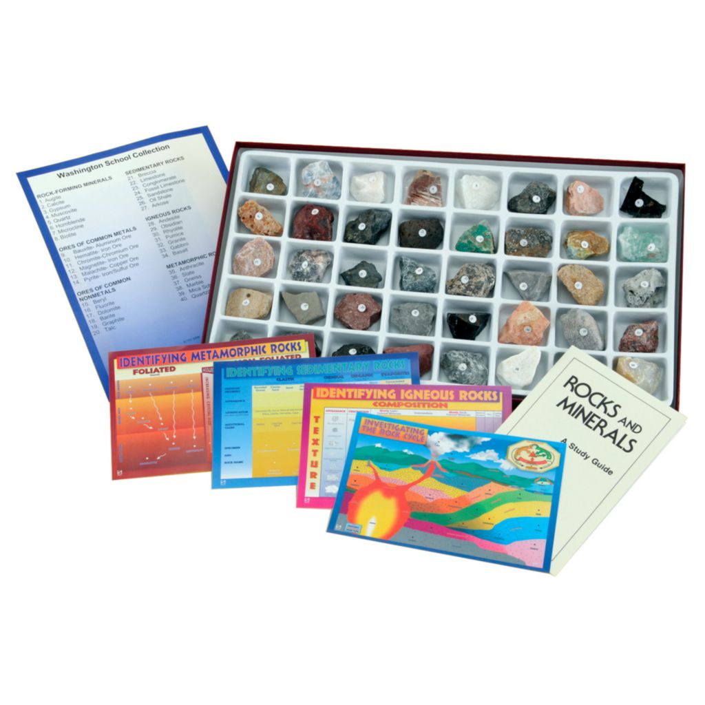 Washington School Collection 2 X 1-1/2Inch^ Washington School Collection, Most Popular Kit, Includes: Specimens In The Following Areas: Rock-Forming Minerals, Ore-Forming Minerals, Industrial Minerals, And Igneous, Sedimentary And Metamorphic Rocks. 40 S