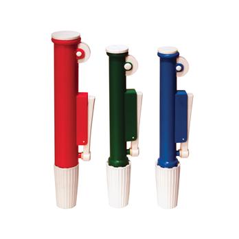 Good quality pipettors designed for easy and precise pipetting. Pumps feature a lever for quick release, and forward or backward wheel movement. The soft elastic chuck has a threaded collar to tightly grip glass or plastic pipettes. Easy to clean. Each size color coded.