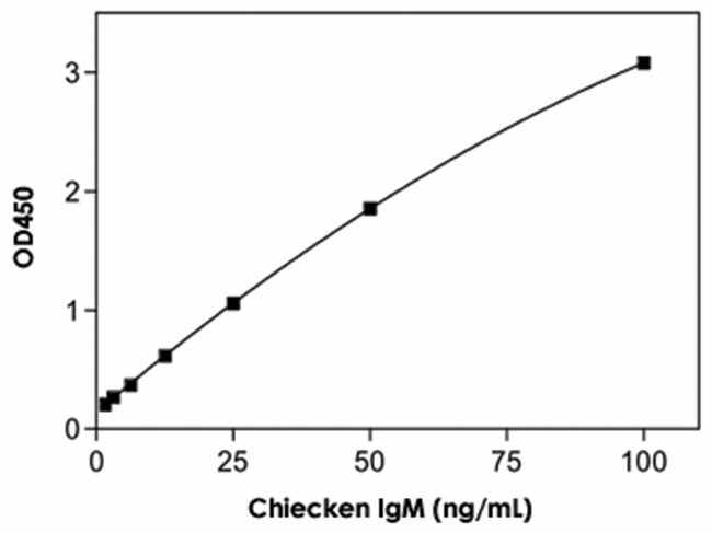 IgM (Chicken) ELISA Kit is an enzyme immunoassay for the quantitative determination of IgM in chicken serum, plasma or egg-yolk extractsQuantificatio
