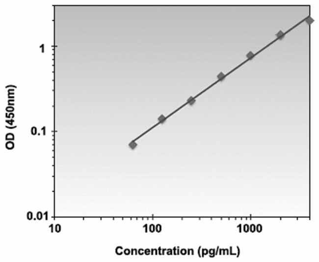 This immunoassay utilizes the quantitative technique of a “Sandwich” Enzyme-Linked Immunosorbent Assay (ELISA) where the target protein (antigen) is bound in a “sandwich” format by the primary capture antibodies coated to each well-bottom and the secondary detection antibodies added subsequently by the investigator