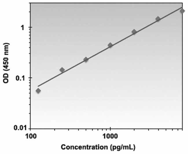 This immunoassay utilizes the quantitative technique of a “Sandwich” Enzyme-Linked Immunosorbent Assay (ELISA) where the target protein (antigen) is bound in a “sandwich” format by the primary capture antibodies coated to each well-bottom and the secondary detection antibodies added subsequently by the investigator
