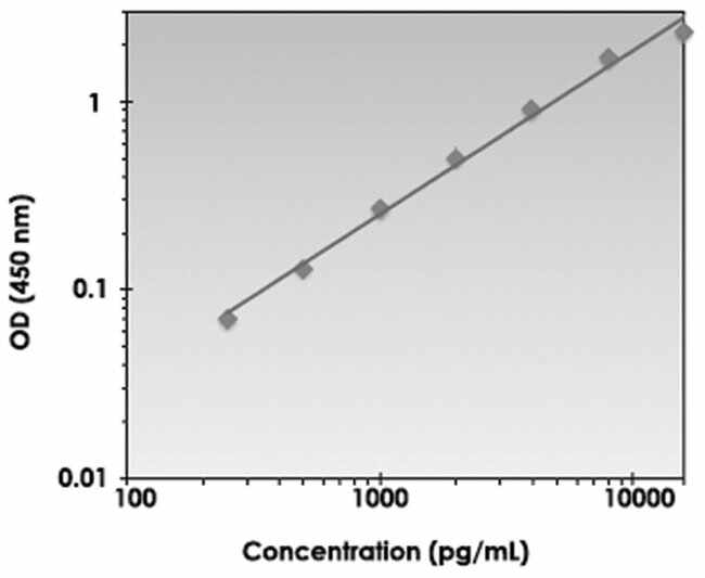 This immunoassay utilizes the quantitative technique of a “Sandwich” Enzyme-Linked Immunosorbent Assay (ELISA) where the target protein (antigen) is bound in a “sandwich” format by the primary capture antibodies coated to each well-bottom and the secondary detection antibodies added subsequently by the investigator