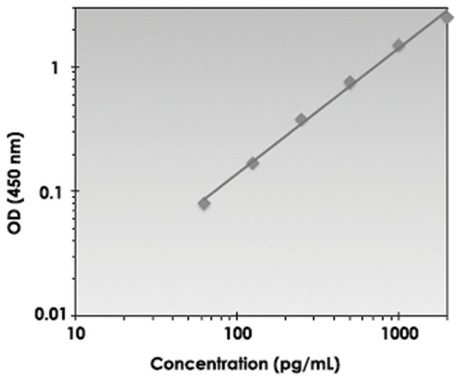 This immunoassay utilizes the quantitative technique of a “Sandwich” Enzyme-Linked Immunosorbent Assay (ELISA) where the target protein (antigen) is bound in a “sandwich” format by the primary capture antibodies coated to each well-bottom and the secondary detection antibodies added subsequently by the investigator