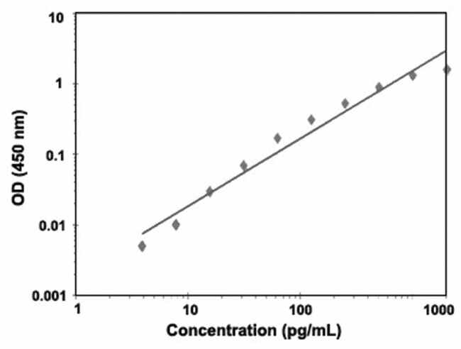 This immunoassay utilizes the quantitative technique of a “Sandwich” Enzyme-Linked Immunosorbent Assay (ELISA) where the target protein (antigen) is bound in a “sandwich” format by the primary capture antibodies coated to each well-bottom and the secondary detection antibodies added subsequently by the investigator