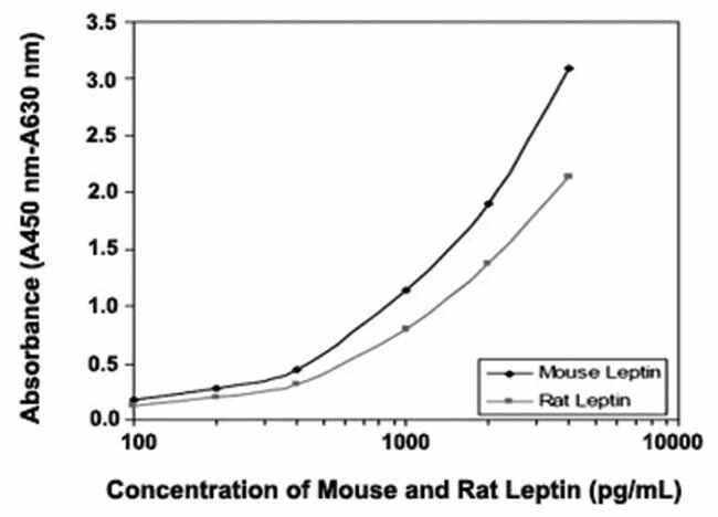 LEP (Mouse/Rat) ELISA Kit, Use to measure quantitatively mouse and/or rat leptin in serum, plasma and tissue culture medium. Sandwich enzyme immunoassay, Each