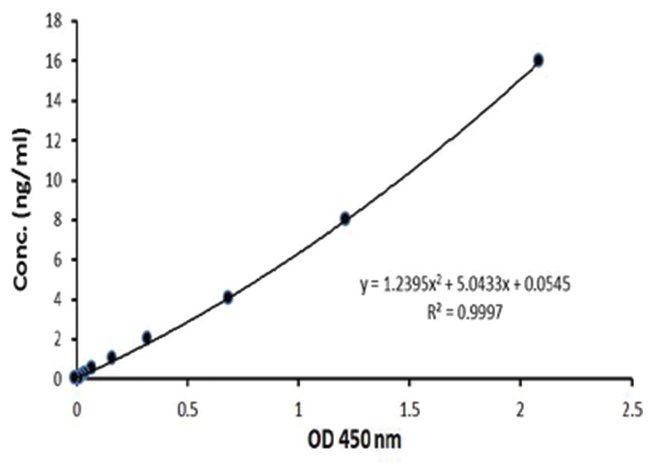 This assay is a sandwich ELISA which utilizies a 96-well microtiter plate which was pre-coated with a monoclonal antibody and a purified polyclonal detection antibody