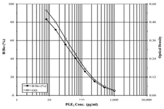 The kit uses a monoclonal antibody to PGE2 to bind, in a competitive manner, the PGE2 in the sample or an alkaline phosphatase molecule which has PGE2 covalently attached to it