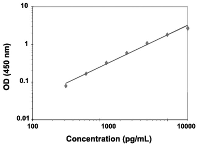 This immunoassay utilizes the quantitative technique of a “Sandwich” Enzyme-Linked Immunosorbent Assay (ELISA) where the target protein (antigen) is bound in a “sandwich” format by the primary capture antibodies coated to each well-bottom and the secondary detection antibodies added subsequently by the investigator