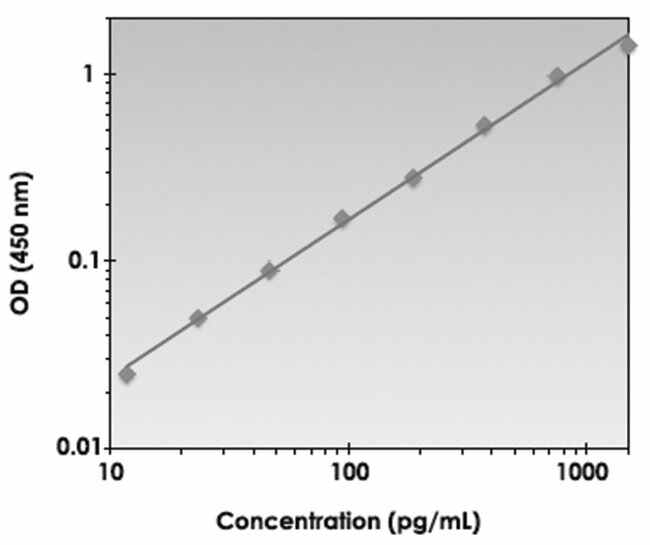 This immunoassay utilizes the quantitative technique of a “Sandwich” Enzyme-Linked Immunosorbent Assay (ELISA) where the target protein (antigen) is bound in a “sandwich” format by the primary capture antibodies coated to each well-bottom and the secondary detection antibodies added subsequently by the investigator