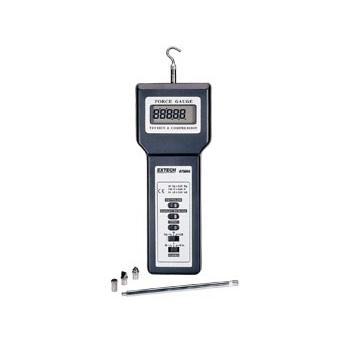 Specifications Push/pull measurements in Kg, lbs., oz. and Newton unitsFive digit LCDLoad cell measurement transducerPeak hold and push-button zeroZero adjustFeatures include selectable fast/slow response, overrange, low battery and advanced function indication. Display reverses to match viewing angle. Optional test stand permits precise tension/compression analysis. Includes hook adapter for tension; flat, cone and chisel head adapters for compression, 5” extension, six AA batteries and carrying case.6411T206411T22Range:176 oz., 5,000 g, 49 Newtons44 lb., 20 kg, 196 NewtonsAccuracy (@23°C):±(0.4 1 digit)&plumn;(0.5 2 digit)Resolution:0.05 oz., 1 g, 0.01 Newtons0.01 lb., 0.01 kg, 0.05 NewtonsOverload Capacity:10 kg30 kgUpdate Rate:Fast Mode: 0.2 seconds; Slow Mode: 0.6 secondsFast Mode: 0.2 seconds; Slow Mode: 0.6 secondsFull Scale Deflection:200 mm200 mmPower Requirements:Six 1.5 V AA (UM-3) batteries or DC 9 V adapter (not included)Six 1.5 V AA (UM-3) batteries or DC 9 V adapter (not included)Dimensions:8.9 x 3.3 x 1.5 inches (227 x 83 x 39 mm)8.9 x 3.3 x 1.5 inches (227 x 83 x 39 mm)Weight:1.2 lb. (551 g)1.2 lb. (551 g)