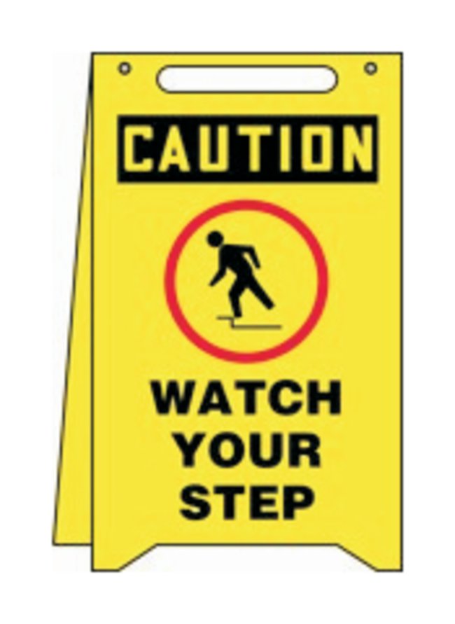 Caution Watch Your Step Foldup Sign, Free-standing sign for hazardous footing, Each