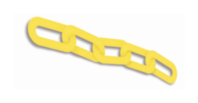 Polyethylene plastic chain links measure 2 x 1 x 1/4 in.. Used with stanchion posts for crowd control and to guide pedestrian traffic.Order InfoAvailable in white, yellow, black, or red. Sold by the foot.