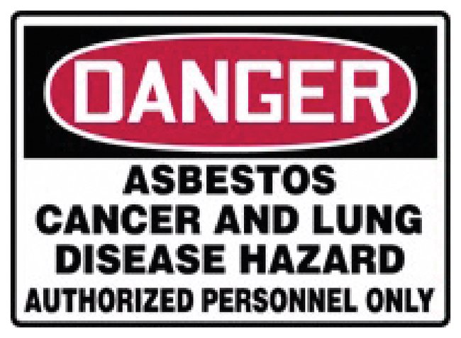 Legend: DANGER ASBESTOS CANCER AND LUNG DISEASE HAZARD AUTHORIZED PERSONNEL ONLYSize: 25.4 × 35.6cm (10 × 14 in.)Material: Adhesive vinylColor: White, Black, RedLanguage: EnglishThis sign is being phased out by June 1, 2016 and replaced with update verbiage.