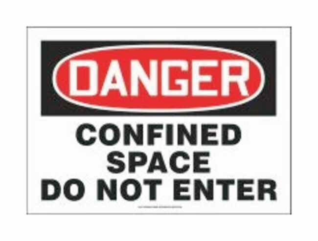 Legend: DANGER. CONFINED SPACE. DO NOT ENTERAvailable in a variety of sizes and materialsColor: White, Black, RedLanguage: English