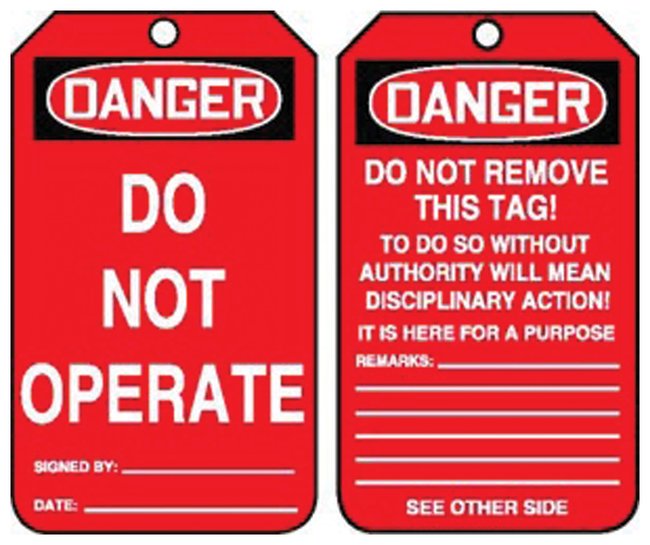Danger: Do Not Operate Tag, Safety tag clearly labels items as inoperable to prevent accidents and injuries, Pack of 25