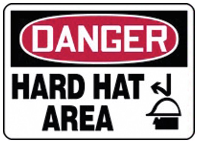 Legend: DANGER. HARD HAT AREASize: 25.4 × 35.6cm (10 × 14 in.)Color: White, back, redLanguage: EnglishModel MPPE062VA and MPPED52VPWith graphic
