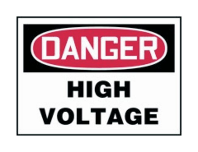 Legend: DANGER: HIGH VOLTAGEAvailable in a variety of sizes and materialsColor: White, black, redLanguage: EnglishModel LELC036VSPLegend: DANGER. HIGH VOLTAGE INSIDE