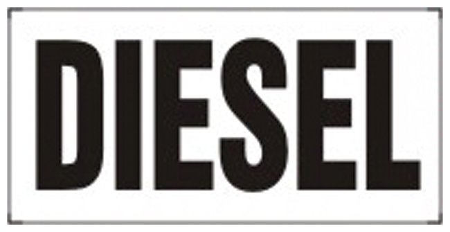 Legend: DIESELSize: 15.2 × 30.5cm (6 × 12 in.)Material: Adhesive dura-vinylColor: Black, WhiteLanguage: English