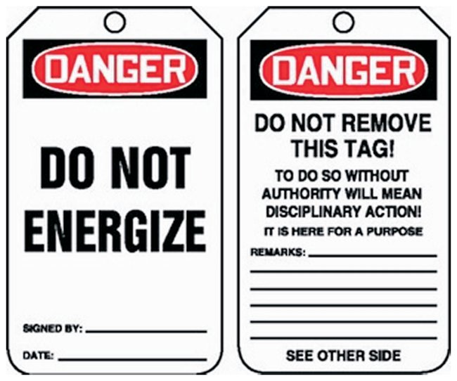OSHA Danger Safety Tag, Prevent others from energizing equipment while it's being worked on with this safety tag, Pack of 25