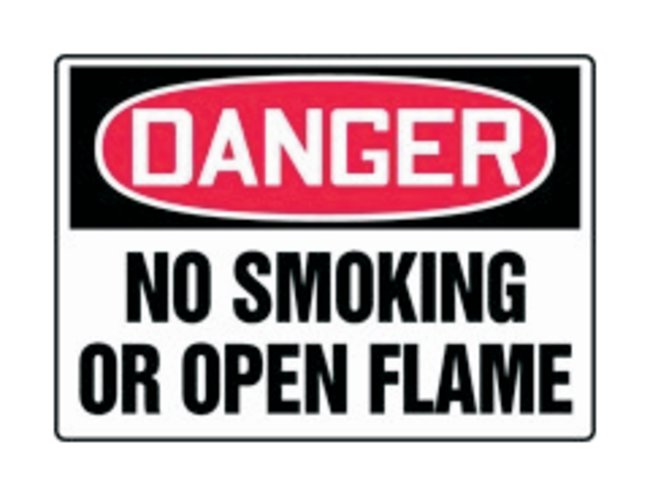 No Smoking Open Flames, Alert workers and patrons that smoking and open flames will not be allowed in this area, Each
