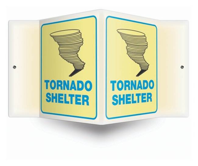 Projection Sign: Tornado Shelter, When you need identification, location and direction, signs can be seen from various angles for extra visibility, Each