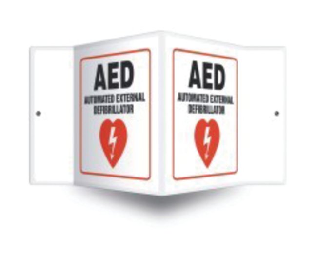 Safety Projection Sign: AED Automated External Defibrillator, Locate equipment or direct your way out with multi-angle view, Each
