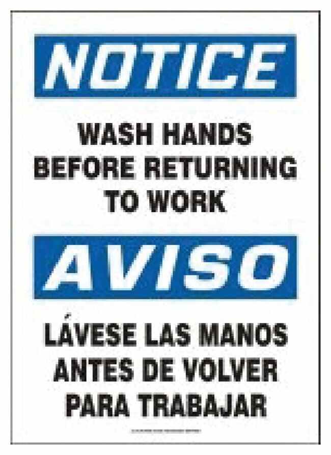 Safety Signs, Bilingual: Wash Hands, Notify employees good hygiene is necessary in the workplace, Each