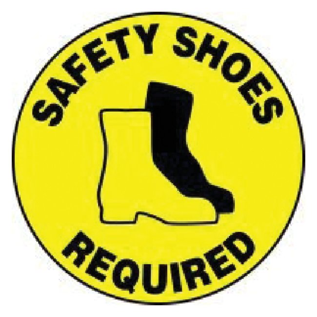 Slip-Gard Round Floor Signs: Safety Shoes Required, Mark bold graphics and messages on your floors and pathways with a nonslip sign, Each