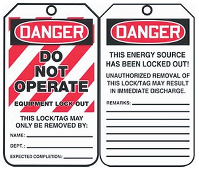Lockout/Tagout Tags, Provide immediate identification of the hazard by using the appropriate message for your tag, Pack of 25