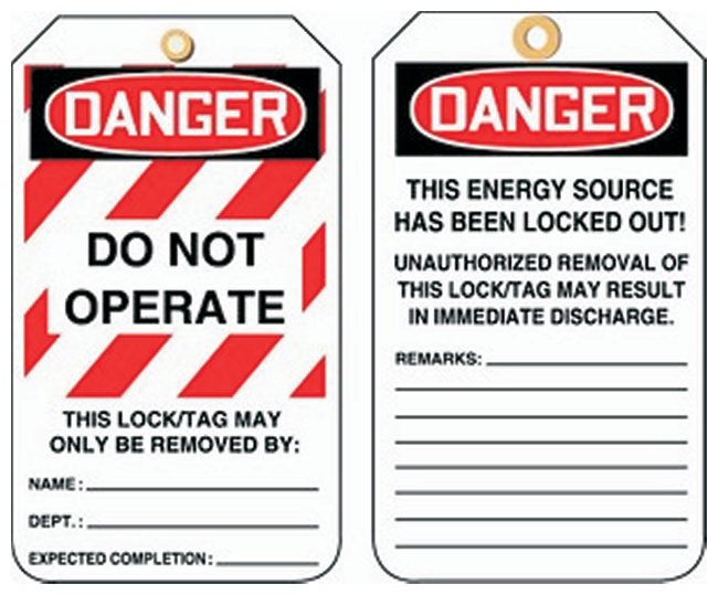 Lockout/Tagout Tags, Provide immediate identification of the hazard by using the appropriate message for your tag, Pack of 25