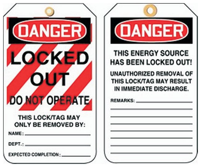 Lockout/Tagout Tags, Provide immediate identification of the hazard by using the appropriate message for your tag, Pack of 25
