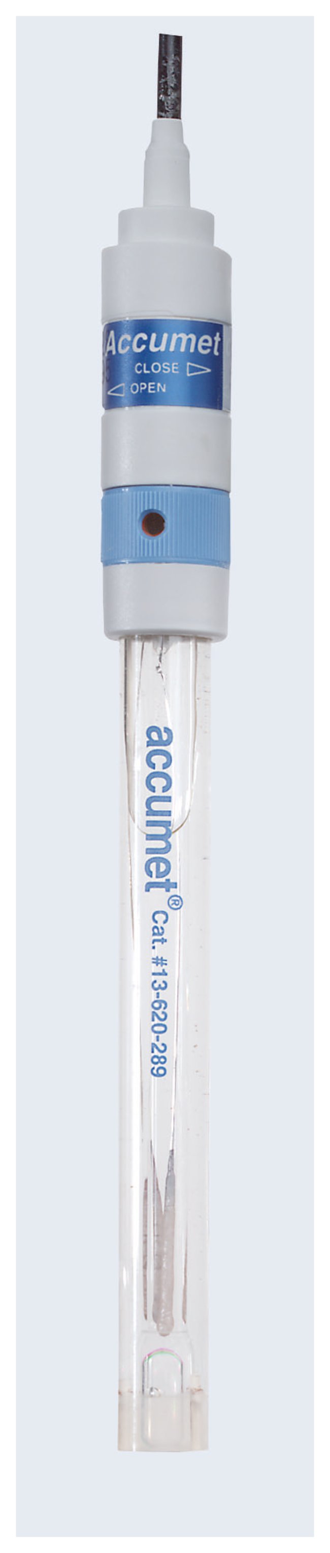 Single-junction Ag/AgCl flat surface modelRugged epoxy body Single porous ceramic junctionBNC connectorRugged epoxy body for use in field or plantIdeal for handheld use with aqueous samplesFlat surface, 114mm length, 13mm dia.Order InfoFor use with pH meters having BNC connection, including accumet Excel (XL) Series, accumet Research (AR) Series and accumet Basic Series (AB15 and AB15 Plus) benchtop metersEndcap seal keeps membrane moist and ready