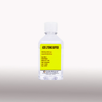 ACK Lysing Buffer^ ACK (Ammonium-Chloride-Potassium) Lysing Buffer is used to lyse red blood cells in samples, such as EDTA-treated whole blood, buffy coats, and bone marrow. pH: 7.4 /- 0.02; 500ml