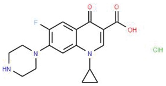 Ciprofloxacin hydrochloride hydrate, CAS # 128074-72-6, is the hydrate form of the hydrochloride salt of ciprofloxacin, a broad-spectrum antibiotic.