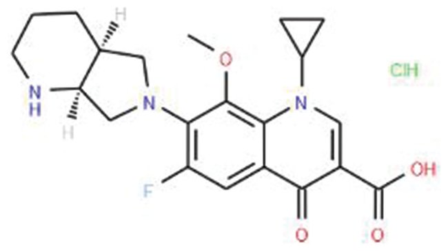Moxifloxacin hydrochloride, CAS # 186826-86-8, is a broad-spectrum compound with antibacterial activity against both gram-positive and gram-negative bacteria. It also shows inhibitory activity against topoisomerase II.