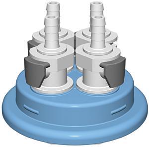 Replacement T spigot, Cat. No.: 89176-922, Cap adapter, 80 mm, with four ¹/₄" hose barbs, Cat. No.: 89170-850, Cap adapter, 120 mm, with two ¹/₄" hose barbs, Cat. No.: 89170-856, Cap adapter, 120 mm, with two ³/₈" hose barbs, Cat. No.: 89170-858, Cap adapter, 80 mm, with four ³/₈" hose barbs, Cat. No.: 89170-852, Versatile barb, closed, Cat. No.: 89176-924, Cap adapter, 80 mm, with two ¹/₄" hose barbs, Cat. No.: 89170-842, Cap adapter, 80 mm, with two ³/₈" hose barbs, Cat. No.: 89170-844, Open cap with closed adapter, 120 mm, Cat. No.: 89170-838, Cap adapter, 83 mm, with three ¹/₄" hose barbs, Cat. No.: 89170-846, Cap adapter, 80 mm, with three ³/₈" hose barbs, Cat. No.: 89170-848, Versatile barb, ³/₈", Cat. No.: 89176-928, Versatile barb, ¹/₄", Cat. No.: 89176-926, Versatile barb, ³/₄", sanitary, Cat. No.: 89176-934, Versatile barb, ³/₄", Cat. No.: 89176-932, Versatile barb, ¹/₂", Cat. No.: 89176-930, Cap adapter, 80 mm, with two ¹/₄" hose barbs and vent, Cat. No.: 89170-870, Cap adapter, 80 mm, with two ¹/₂" hose barbs and vent, Cat. No.: 89170-872, Open cap with adapter, 80 mm, with two ¹/₂" hose barbs and vent, Cat. No.: 89170-834, Closed cap, 120 mm, Cat. No.: 89170-836, Open cap with closed adapter, 80 mm, Cat. No.: 89170-830, Open cap with adapter, 80 mm, with two ¹/₄" hose barbs and vent, Cat. No.: 89170-832, Cap adapter, 120 mm, with four ¹/₄" hose barbs, Cat. No.: 89170-864, Cap adapter, 120 mm, with four ³/₈" hose barbs, Cat. No.: 89170-866, Cap adapter, 120 mm, with three ¹/₄" hose barbs, Cat. No.: 89170-860, Closed cap, 80 mm, Cat. No.: 89170-828