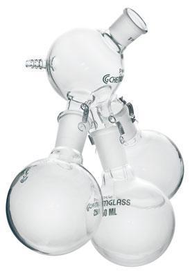 DISTILLING RECEIVER^ Replacement Components. Distribution Adapter, 24/40. Cow-type design having three receivers 45[degree] apart. Condensers with lower drip tip inner joints will protrude into the spherical section, permitting the distillate to fall directly into the receiving flasks.